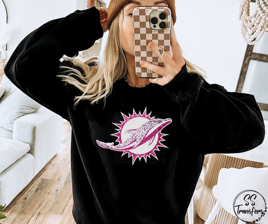 Faux Glitter Pink Football Pro Teams (All Pro Teams Avail) DTF Transfer