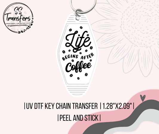 Life Begins After Coffee UV Motel Keychain