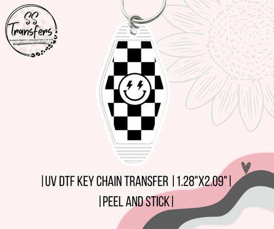 Checkered Happy Face UV Motel Keychain