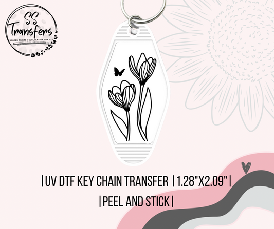Flower Outline UV Motel Keychain
