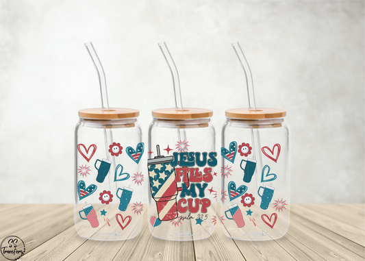 Jesus Fills My Cup Patriotic Libbey UV Wrap