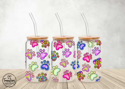 Colorful Paw Prints Libbey UV Wrap