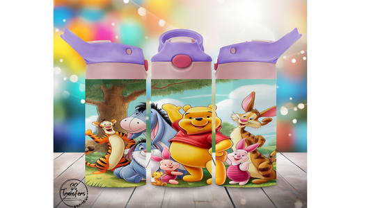 Yellow Bear & Friends 12oz Sippy/Flip Top Tumbler Sublimation Transfer