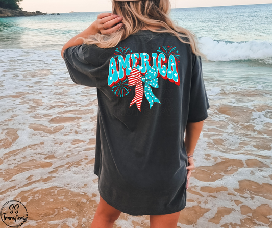 America Fireworks and Bow (pocket included) DTF Transfer