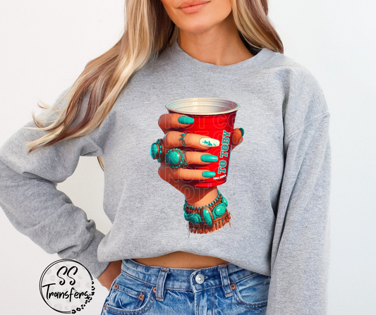 Turquoise & Red Cup To Toby DTF Transfer