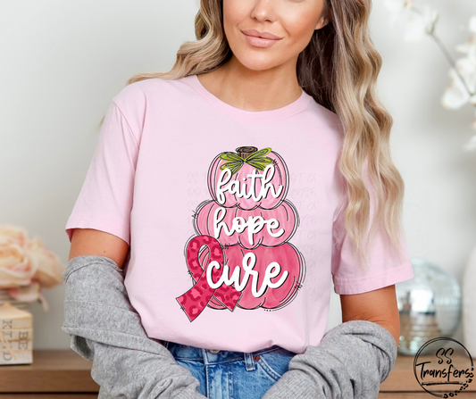 Faith, Hope, Cure Pink Pumpkins DTF Transfer